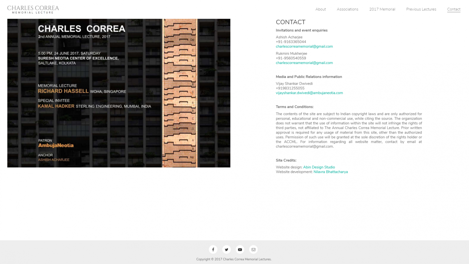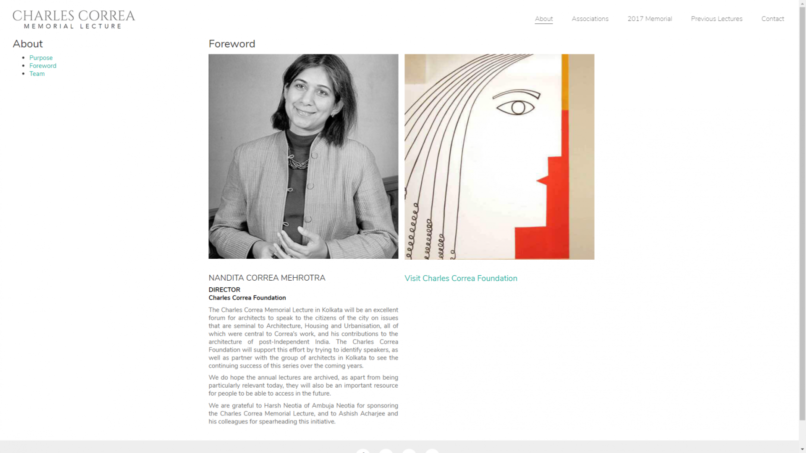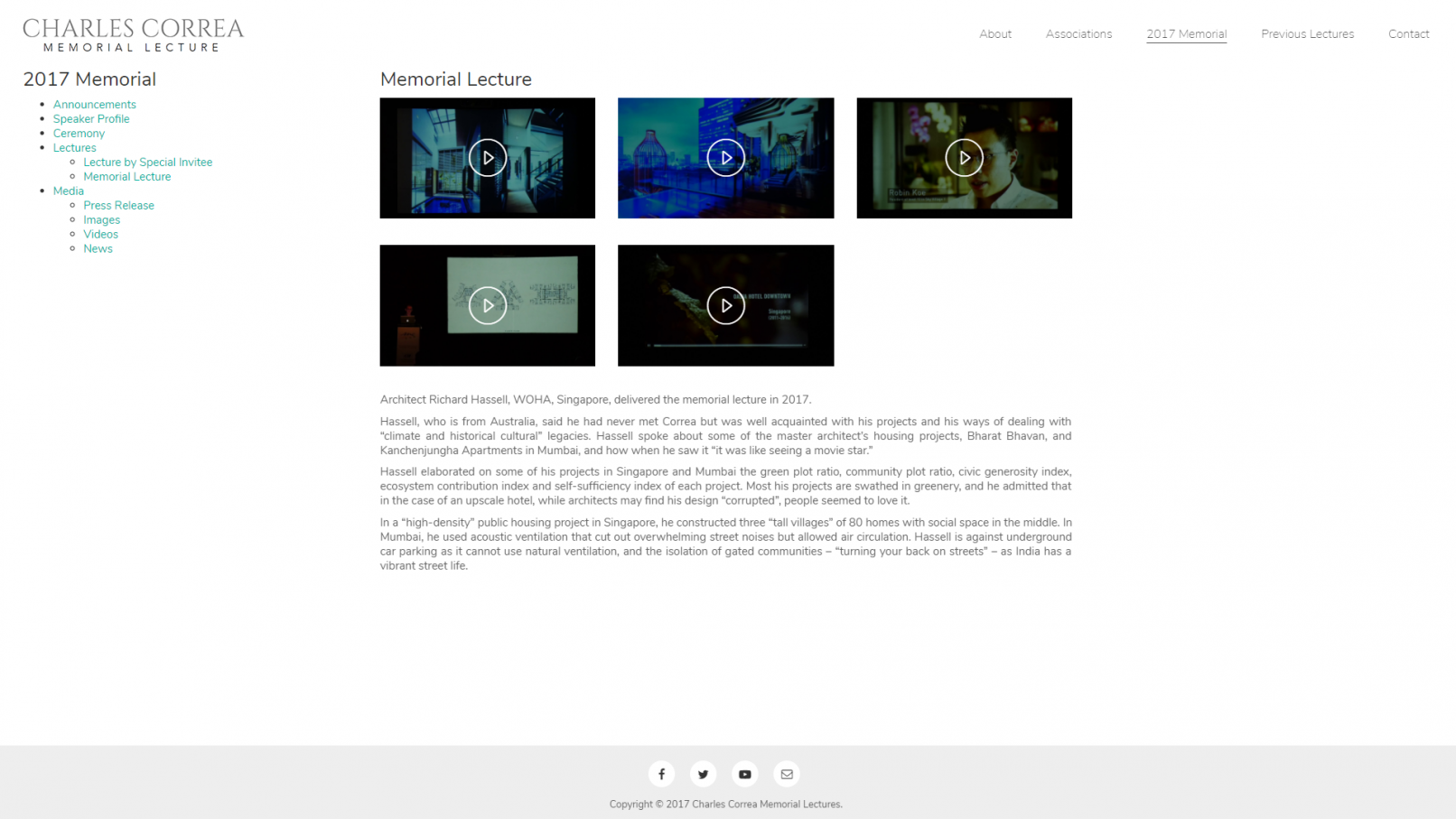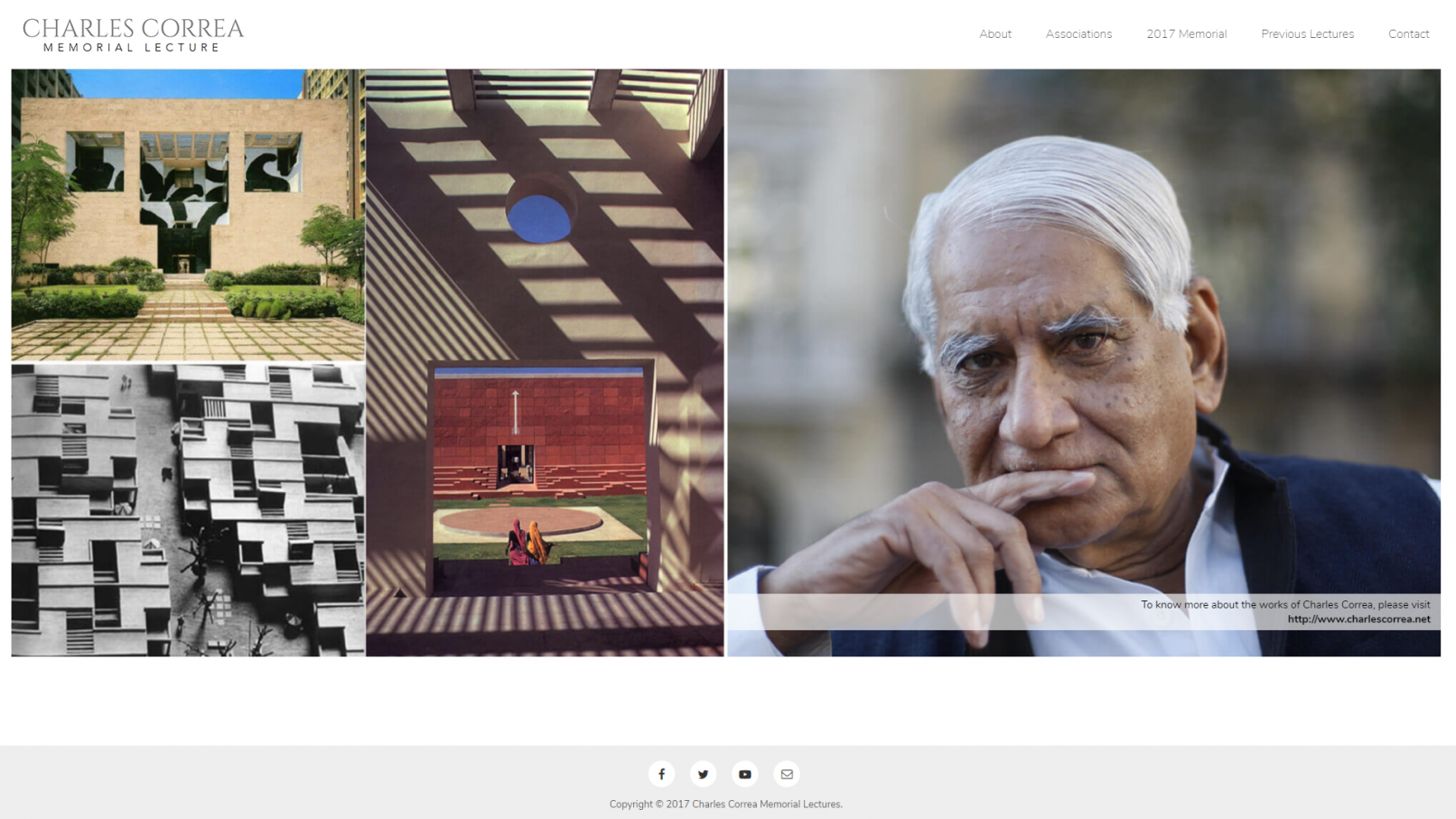 A responsive WordPress website for showcasing and archiving an annual lecture series held in the memory of the legendary Indian architect, Charles Correa.