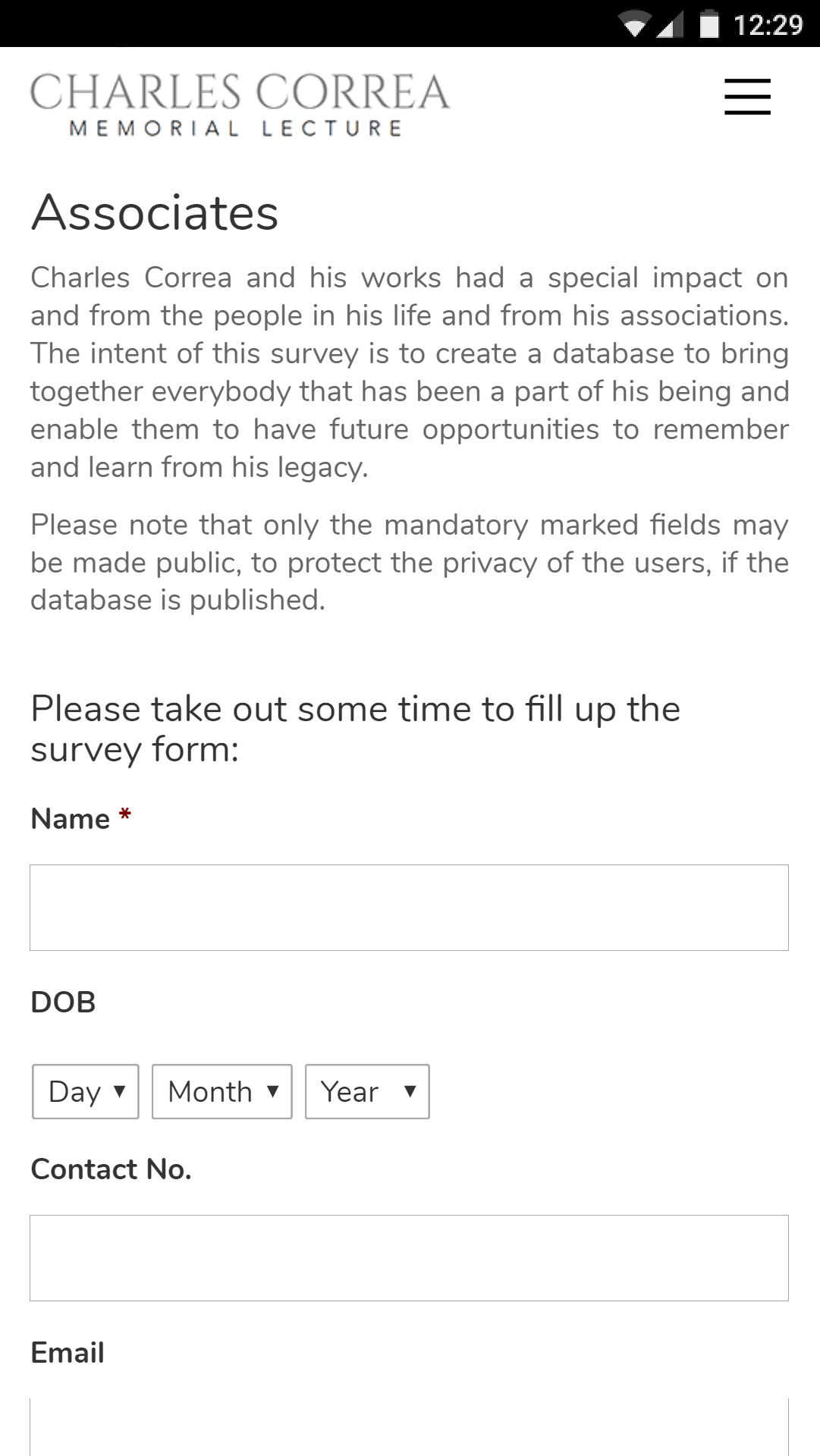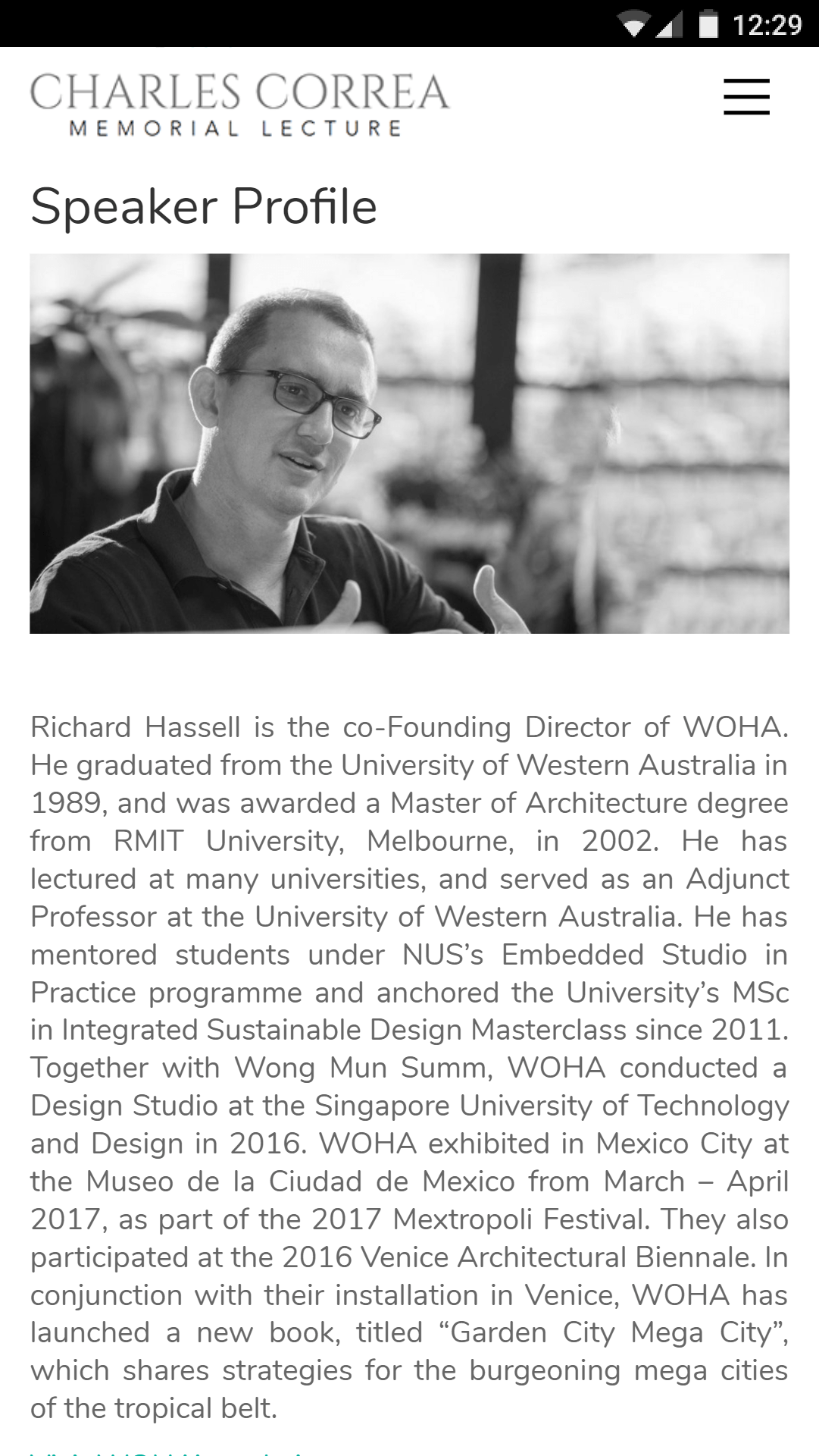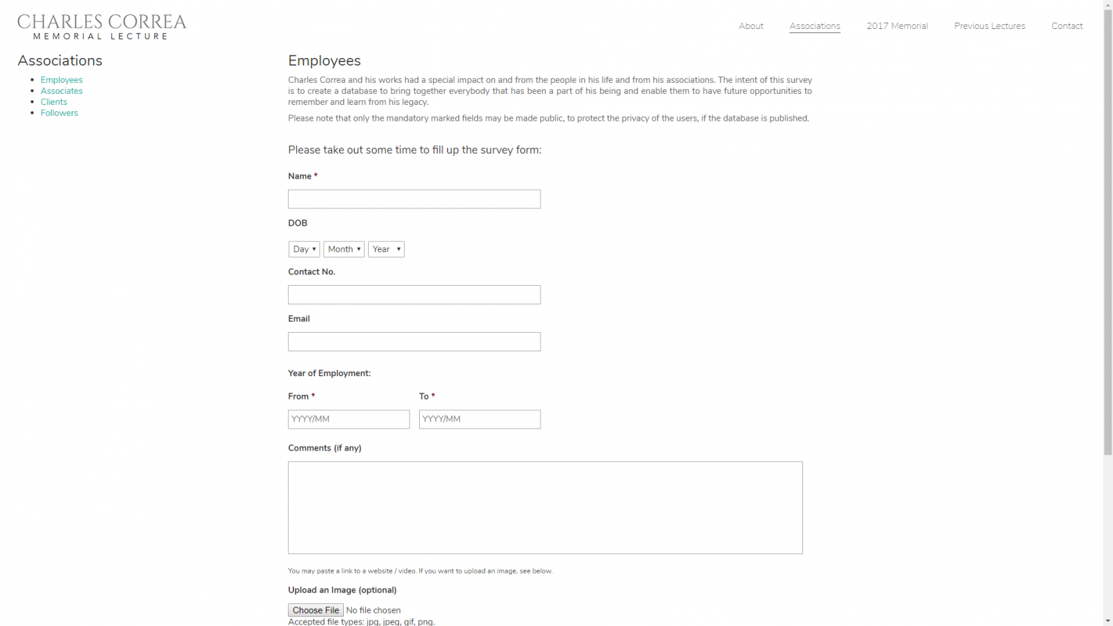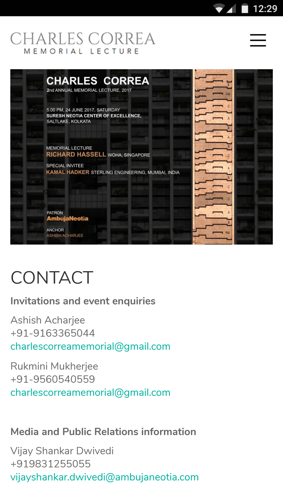 A responsive WordPress website for showcasing and archiving an annual lecture series held in the memory of the legendary Indian architect, Charles Correa.